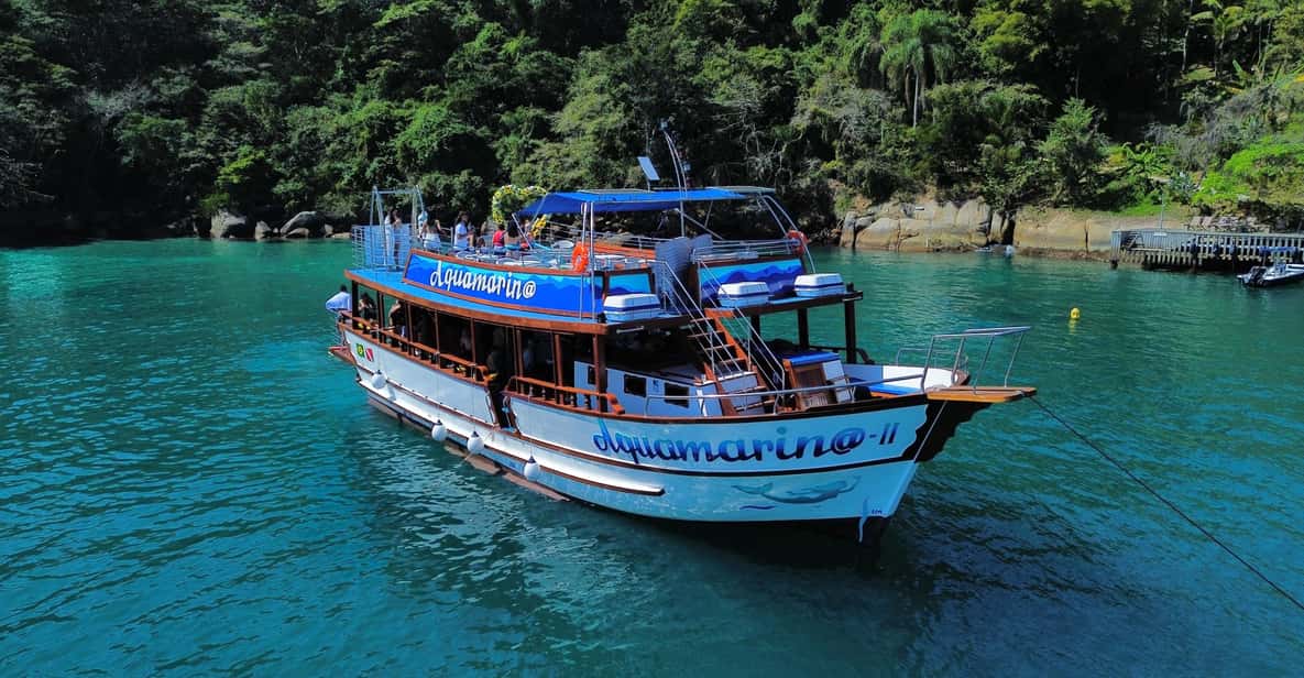 Passeio de 5h pela Baía de Paraty com conforto a bordo, fotógrafo e principais pontos turísticos. Adultos R$110.